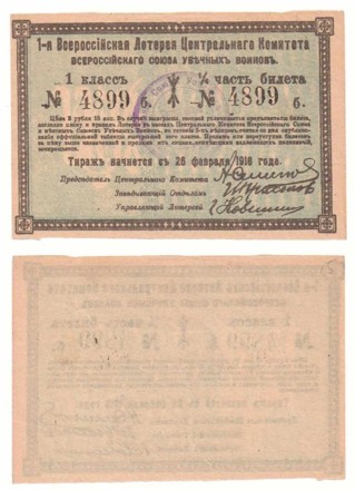 Лотерейный билет 3 рубля 15 копеек 1918 года, 1-я Всероссийская Лотерея Центрального Комитета Всероссийского Союза увечных воинов